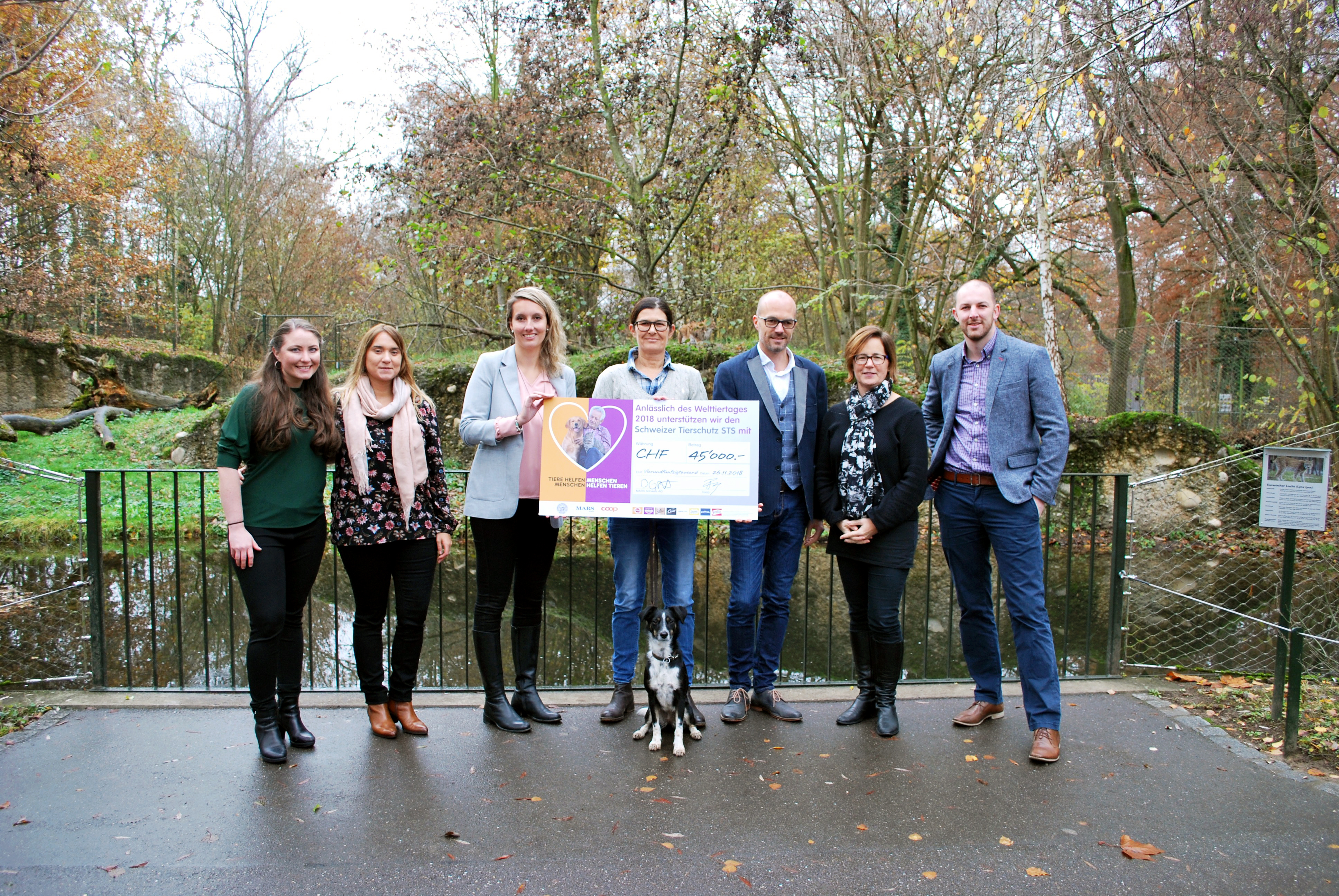 Mitarbeitende von Mars und Coop übergaben Katja Polzin vom Schweizer Tierschutz STS den Check im Tierpark Lange Erlen in Basel. «Wir freuen uns riesig über die ausserordentliche Spende. Ohne die Unterstützung von Mars und Coop könnten wir diese wichtigen Projekte nicht im notwendigen Umfang realisieren. Dafür danken wir ganz herzlich!», sagt Polzin.