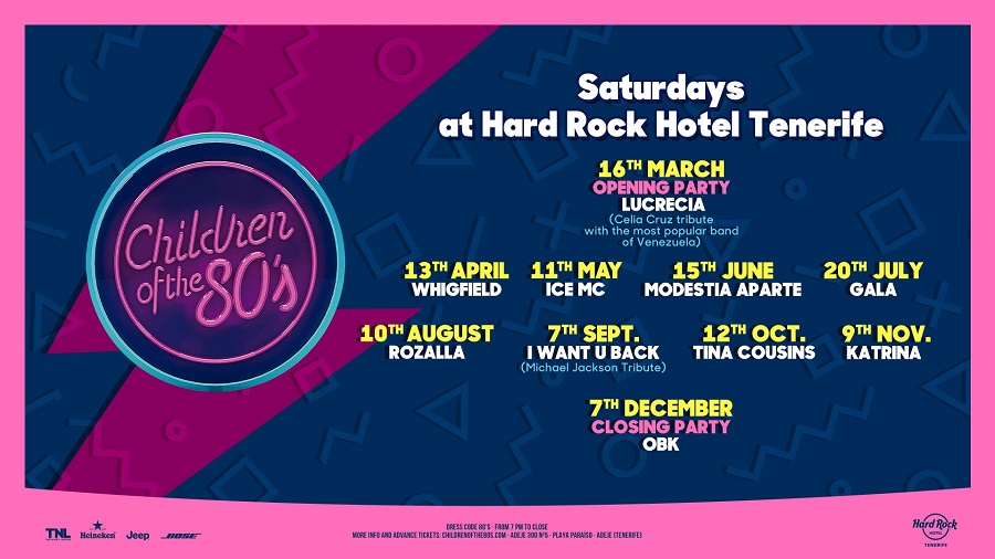 Zehn Termine für Hard Rock Hotel Tenerifes nostalgische 80er Partyreihe wurden für 2019 bestätigt. Den Auftakt bilden Lucrecia (eine Hommage an Celia Cruz) und Venezuelas berühmtestes Orchester (wie zuvor bereits angekündigt wurde) am 16. März.