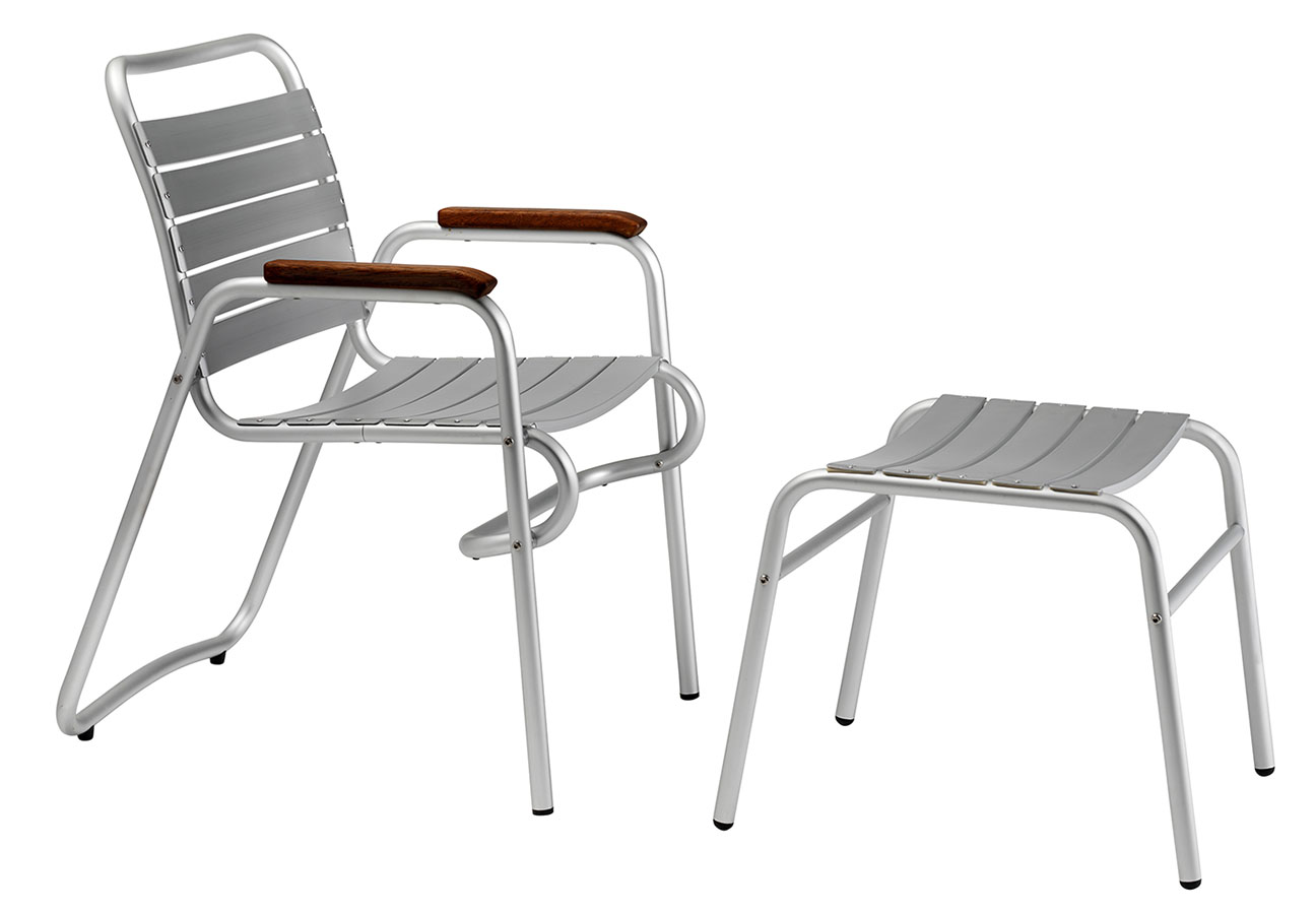 Die Sparsamkeit an Form und Farbe unterstreicht das klare Design. Die Konstruktion aus gebogenem Aluminium-Rundrohr mit zwei geschlossenen Formen verleiht dem ALU7 Stabilität und eine eigenständige Optik. Durch die Armlehnauflagen aus Massivholz gewinnt der stapelbare Outdoor-Sessel zusätzlich an Komfort und ist in jeder Jahreszeit allwettertauglich.