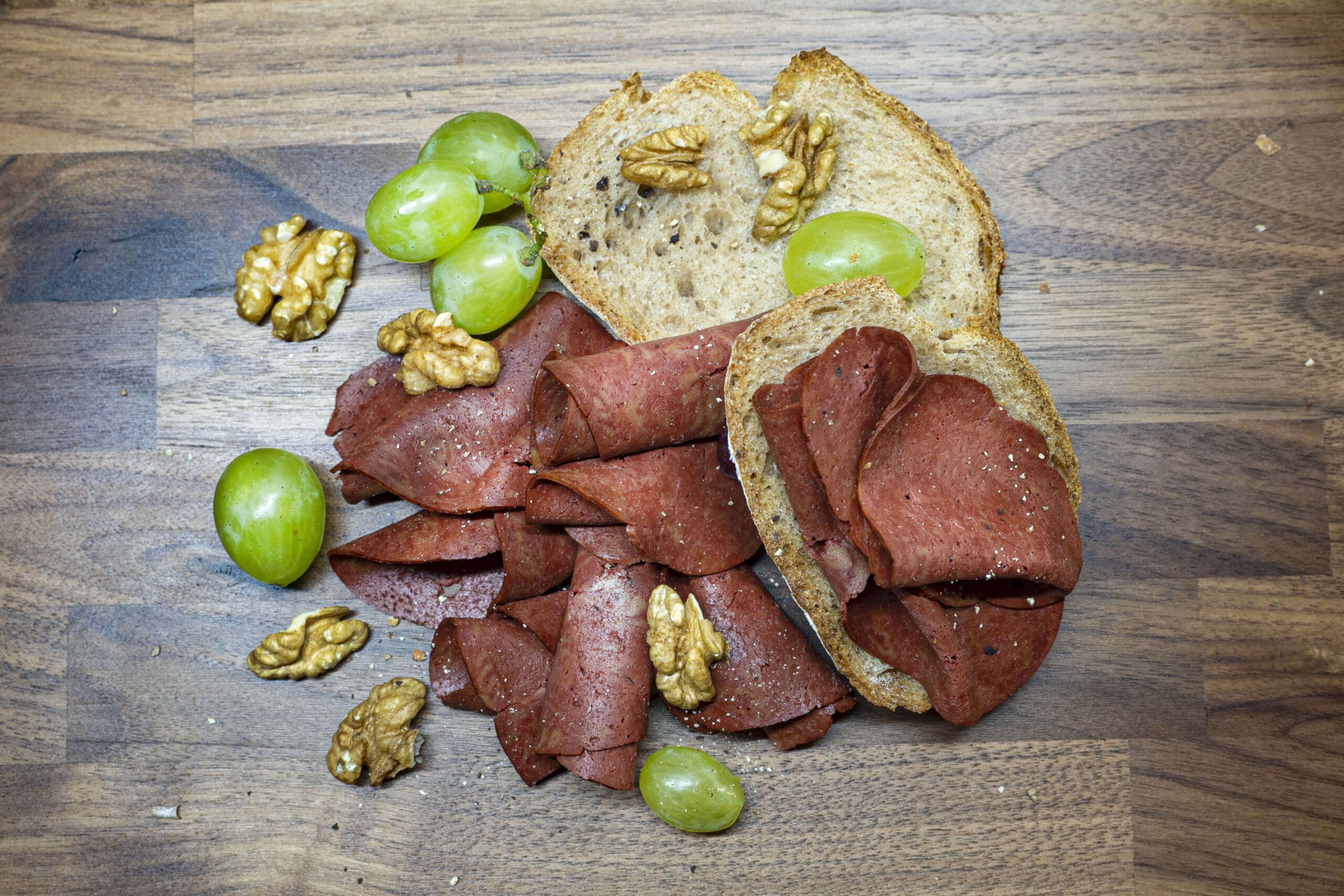 Fleischloses Bündnerfleisch, das wie Bündnerfleisch schmeckt? Ja! Die Berner Firma Outlawz Food lanciert pflanzliche Trockenfleisch-Tranchen auf Basis von Weizenprotein. Und setzt mit dieser veganen Charcuterie-Sorte einen neuen Meilenstein.