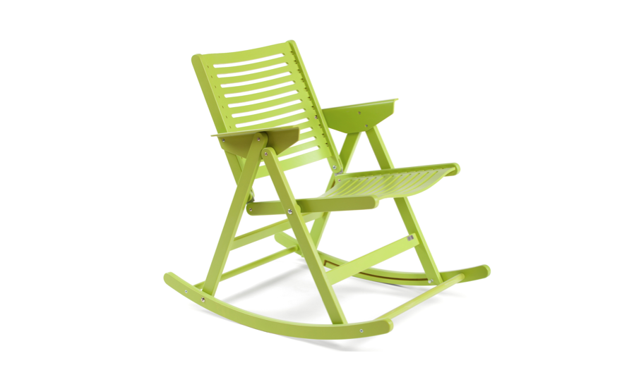 Das Design dieses Schaukelstuhls ist identisch mit dem legendären «Rex»-Stuhl von Designer Niko Kralj, doch er verfügt zusätzlich über Kufen zum Schaukeln. Auch das solide Konstruktionsprinzip und den innovativen Klappmechanismus haben die Varianten Stuhl, Lounge Chair und Schaukelstuhl der Rex Kralj Kollektion gemeinsam. Das Massivholzgestell aus Buche verbindet sich über die seitlichen Zargen mit dem Sitz und Rücken aus Sperrholz und ist in sechs Farben erhältlich. Damit eignet sich «Rex Rocking» als komfortabler Wohnzimmerstuhl und natürlich auch als Relaxmöbel für den Balkon, die Veranda oder den Garten.