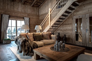 Das großzügig gestaltete Chalet Schmiedalm bietet auf 400 Quadratmetern ein Urlaubszuhause inmitten der Berglandschaft der österreichischen Alpen. Drei Etagen stehen Gästen zur Verfügung und überzeugen mit hochwertigem und gemütlichem Design, das hochwertige Materialien wie Natursteine, edle Hölzer oder feinen Loden gekonnt inszeniert. Moderne, internationale Elemente harmonieren mit historischen Stücken wie beispielswiese dem originalen Kachelofen, der heute Gäste in der Küche der Schmiedalm wärmt und dies viele Jahre zuvor schon in der Bauernstube des Gutshof Unterschwarzach getan hat. Im geräumigen Wohnzimmer hingegen begrüßt ein eindrucksvoller Kronleuchter aus Horn, der in Kanada speziell für die Schmiedalm gefertigt wurde, die Bewohner.