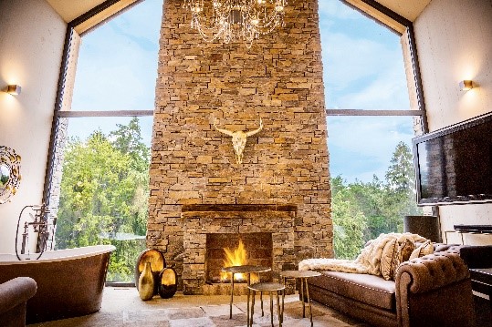 Lauschige Plätzchen vor dem lodernden Kamin finden sich auch in den Golden Hill Country Chalets & Suites in der Südsteiermark / Österreich zur Genüge. Besonders in der Winterzeit eröffnen die Kaminecken in den Luxus-Chalets und im Loft wohlige Rückzugsorte zum Aufwärmen nach einer Schneewanderung in den steirischen Weinbergen, die sich ein Winter-Wonderland à la Dean Martin verwandeln. Bei heißem, lecker-weihnachtlich duftenden Glühwein oder edlen Tropfen der Region, können sich Gäste entspannt zurücklehnen und das Leben genießen. Die Feuerschale im Innenhof zeigt sich als kleines Highlight und Alleskönner: Mit Holzstöcken und fluffigem Hefeteig ausgestattet, hilft Gastgeberin Barbara Reinisch ihren Gästen, das perfekte Stockbrot zu backen und versetzt sie zurück in unbeschwerte Kindheitstage.