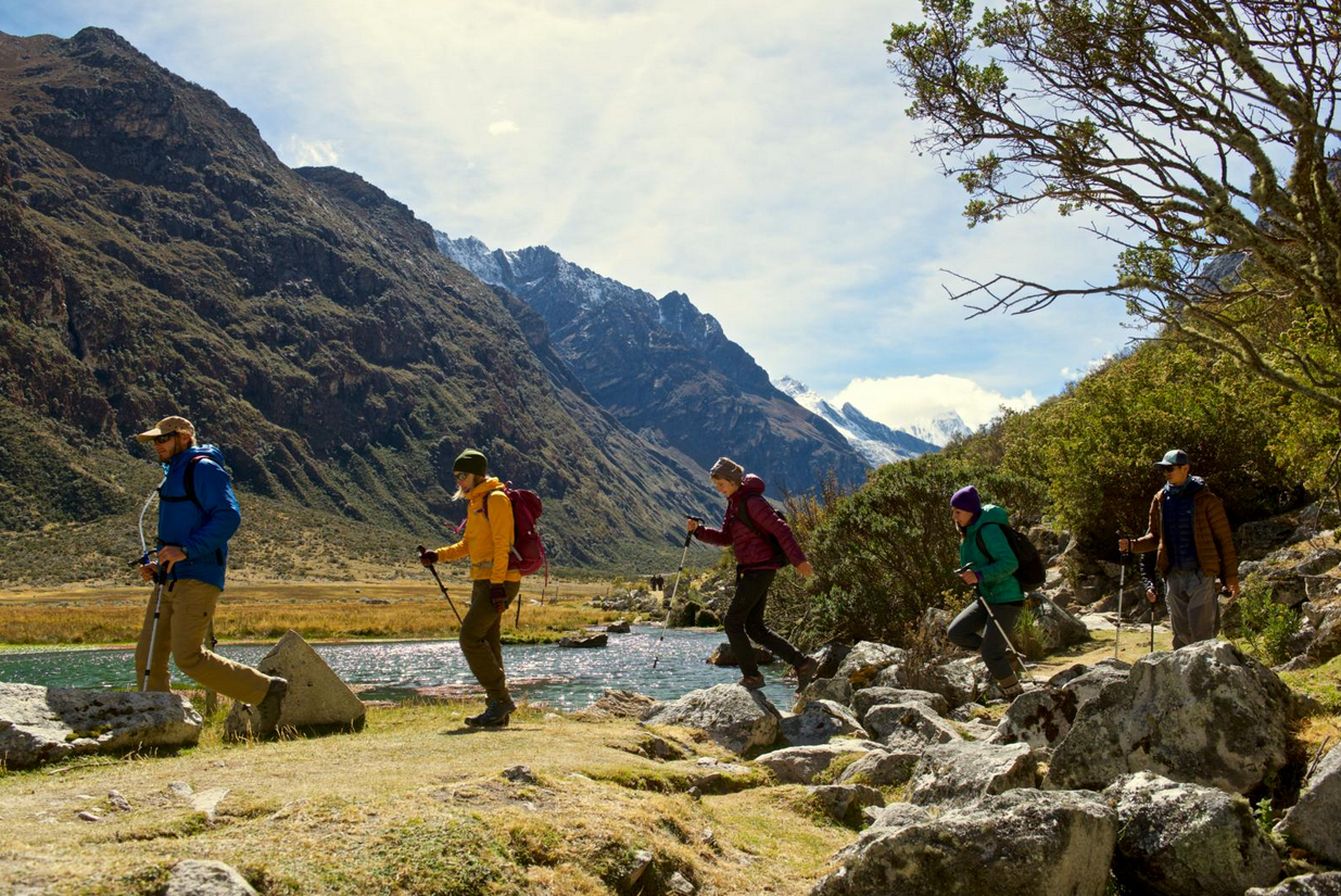 Trotz der Schönheit der Gebirgskette sind in dieser Gegend noch immer recht wenige Wanderer unterwegs. Fast täglich gilt es während dem Trekking, das je nach Kondition in acht bis 14 Tagen bewältigt werden kann, mindestens einen Pass zu überwinden. Die Landschaft wechselt hier gewissermassen stündlich von schroffen Felsen zu sanften Grassteppen, von grauen Bergmassiven zu weißen Gletschern, von grünen Tälern zu blauen Bergseen. Diese Vielfalt zieht sich auch durch die Campingplätze, die für die Nachtruhe zur Verfügung stehen. Ob direkt neben einer Lamaherde, im Schatten eines schneebedeckten Mehrtausenders oder am Ufer einer türkisfarbenen Lagune, es gibt kaum eine schönere Kulisse für sanfte Träume. Und eines haben alle Zeltlager gemeinsam: Über dem Nachtlager funkelt der Sternenhimmel.