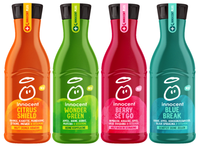 Alle „innocent Plus“ sind ab sofort in der 750-ml-Karaffe in der Schweiz in ausgewählten Coop- und Manor-Verkaufsstellen erhältlich. UVP: CHF 4.70