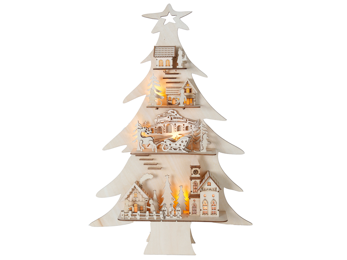 Ein kleiner Elektromotor sorgt dafür, dass sich der Weihnachtsbaum sanft dreht – und je nach Wunsch sogar von einer Reihe bekannter Weihnachtsmelodien begleitet wird, die ineinander übergehend angespielt werden. Der Baum ist ca. 120 cm joch und hat einen Durchmesser von ca. 60 cm.