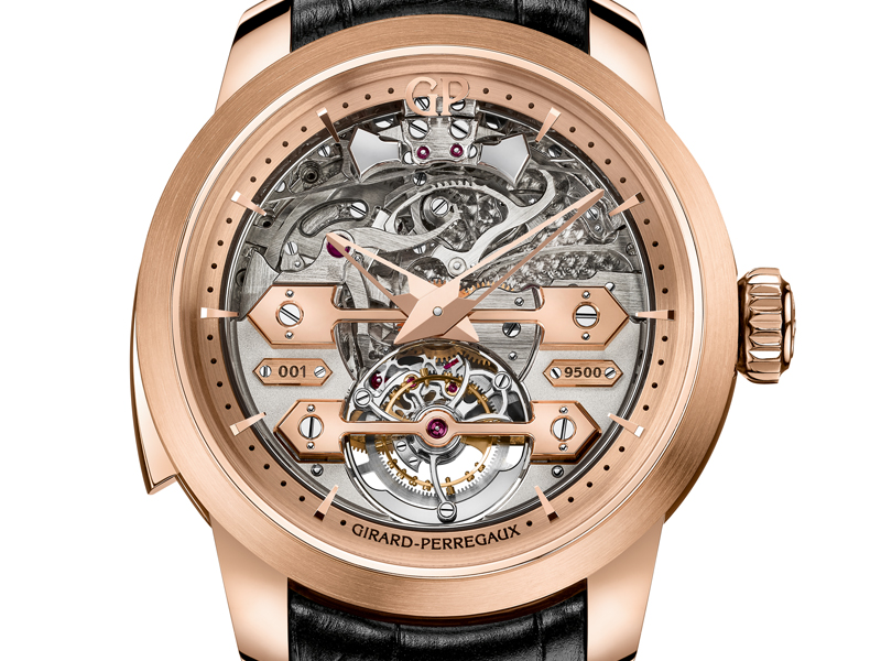 Mit dem Wunsch, neue Kreativität in die traditionelle Welt der Uhrenkomplikationen einzubringen, entschied sich die Manufaktur Girard-Perregaux für eine klassische Uhr. Auf ihrer Vorderseite weist sie ein Tourbillon mit Goldbrücke auf. Auf der gleichen Seite befindet sich die Mehrzahl der Komponenten, die es einer Minutenrepetition ermöglichen, einen kräftigen, klaren Klang zu erzeugen, selbst wenn die Uhr am Handgelenk getragen wird. Für dieses Ergebnis mussten die Uhrmacher nicht nur das gesamte Uhrwerk überarbeiten, sondern auch die Konstruktion und Funktionsweise.