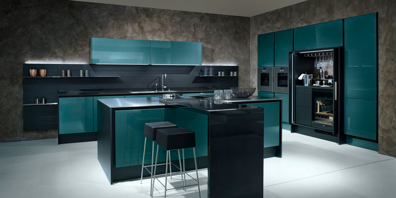 Zur Küchenmeile A30 erweitert der Traditionshersteller seine Lackkompetenz jetzt auf einzigartige Weise: neue, chromatisierte Hochglanzlacke stehen im Fokus der diesjährigen Messepräsentation. Poggenpohl bietet 14 spektakuläre Metallic-Farbtöne wie diamantweiß, champagnergold, nachtblau oder petrolgrün an. Diese sind sowohl in moderner, gradliniger Frontgestaltung als auch als klassische Rahmenfronten lieferbar. Den einzigartigen Effekt der neuen Hochglanz Metallic-Oberflächen zeigt Poggenpohl u.a. in einer beeindruckenden Küchenplanung mit großflächigen Fronten in petrolgrün metallic, kombiniert mit Lack schwarz matt, poliertem Naturstein und Edelstahl.