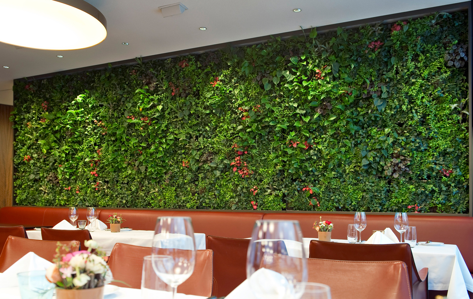 Räume mit Pflanzen werden als schöner und gemütlicher wahrgenommen – sie strahlen eine einladende Atmosphäre aus. Das gilt speziell für Gasträume wie Restaurants oder Cafés. Allerdings zählt in der Gastronomie jeder Sitzplatz für den Umsatz und es bleibt eigentlich kein Raum für Pflanzkübel oder ausladende Gewächse. Die ideale Lösung: Pflanzen an den Wänden oder als Raumteiler.