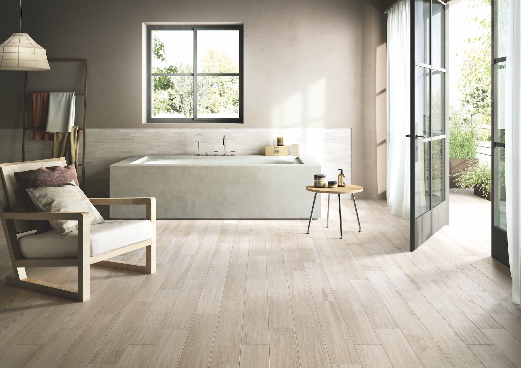 Dieses «Holz» ist unverwüstlich. Es eignet sich für den Innenraum wie für draussen, für Nassräume wie für Wohnzimmer, für die Wand wie für den Boden. «Natura Aequa» von Keramikland ist eigentlich kein Holz, sondern Feinsteinzeug.