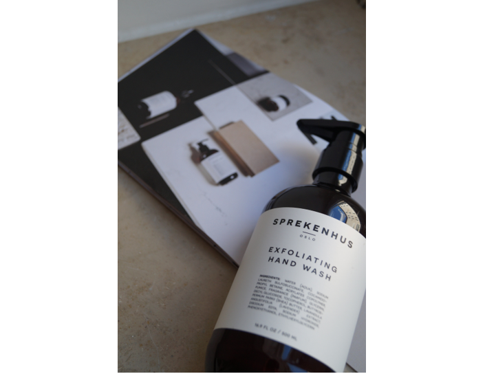 Das Exfoliating Hand Wash von SPREKENHUS ist eine Kombination aus Flüssigseife und Peeling. Mit seiner zarten Formulierung aus Pflanzenextrakten und Bimsstein reinigt, regeneriert und schützt der stylishe Pflege-Booster aus Norwegen die Hände.