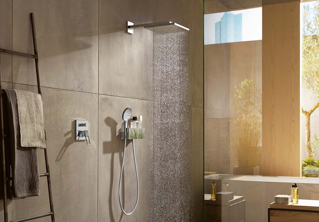 Elegant im Auftritt und aussergwöhnlich in der Wasserperformance: Das Brausenprogramm Raindance E von hansgrohe überzeugt auf der ganzen Linie und wird durch sein markantes Design zum Blickfang im modernen Bad.
