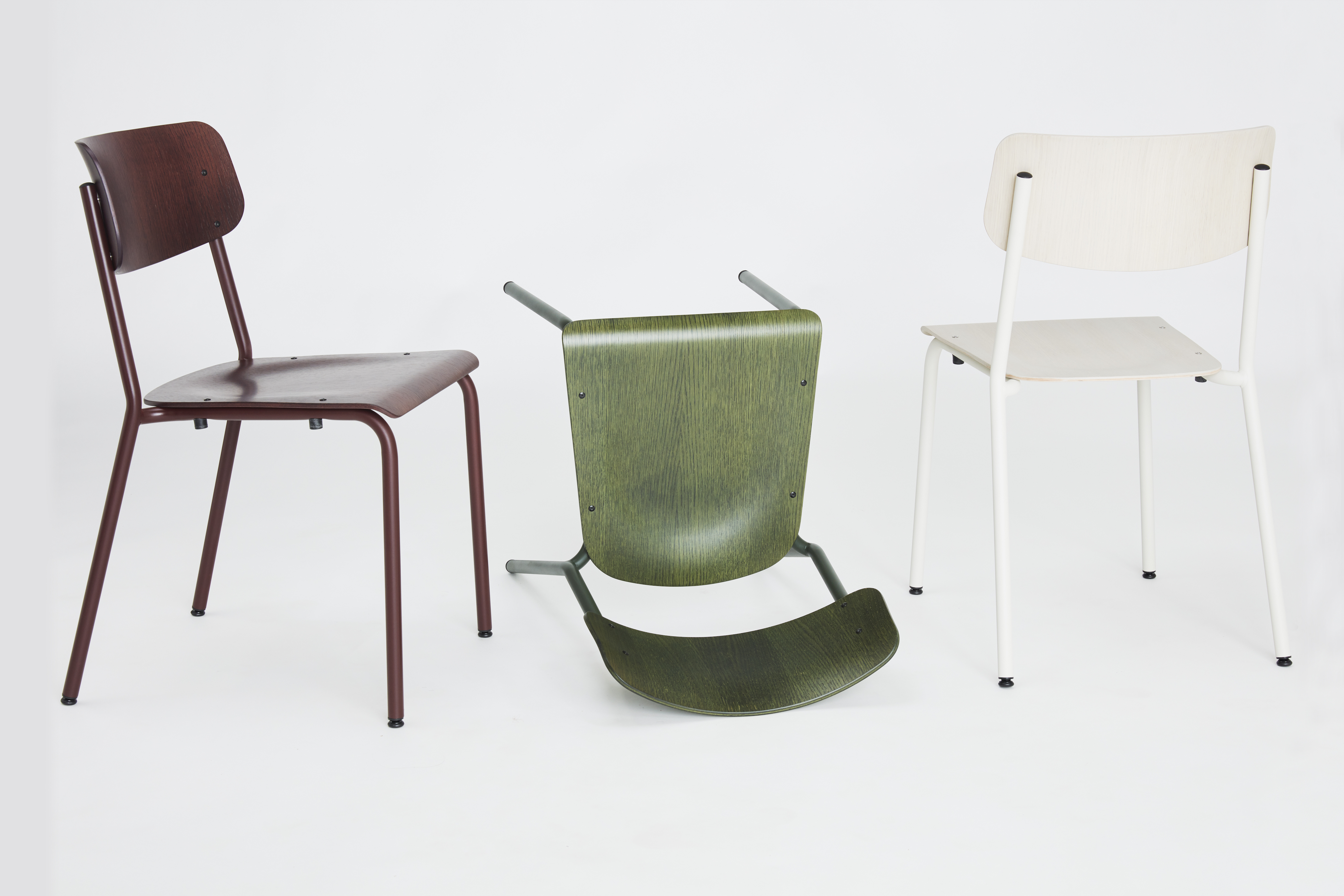Im Bauhaus Jubiläumsjahr legt Embru den Stuhl in drei neuen Farben nach den Originalfarbkarten der 1930er Jahre auf – zusammen mit der reduzierten Linienführung eine zeitgemässe Kombination. Das Stahlrohrgestell sowie die Eichenholzteile für Sitz und Rücken gibt es neu in den Farben Schwarzrot, Flaschengrün und Sandgrau. Für Saalbestuhlungen gibt es optional eine klappbare Reihenverbindung, welche bei Nichtgebrauch unsichtbar unter dem Stuhl verschwindet. Als weitere Option ist der Designklassiker von Embru neu auch mit Sitzpolster erhältlich.