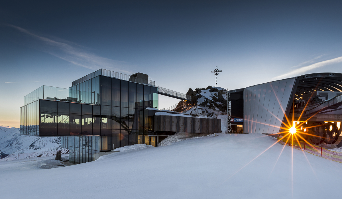 Am Gipfel des Gaislachkogls gelegen, ist das ice Q Schauplatz schicksalhafter Begegnungen und spektakulärer Verfolgungsjagden. „Im Film stellt unser Gourmetrestaurant eine innovative Heilanstalt dar, in der Patienten mit grünen Verdauungsenzym-Shakes versorgt werden. Im echten Leben verwöhnen wir unsere Gäste dafür mit Weinkultur auf sprichwörtlich höchstem Niveau“, erzählt Angelika Falkner, Gastgeberin des Das Central. Mit dem PINO 3000 reift dort ein besonderer Schatz im eigens geschaffenen Weinkeller und bietet aufgrund spezifischer Sensorik in Höhenlage ausgefallene Geschmacksmomente. Die extravagante Glasfassade gibt den Blick auf die tiefverschneiten Hänge der Ötztaler Gletscher frei.
