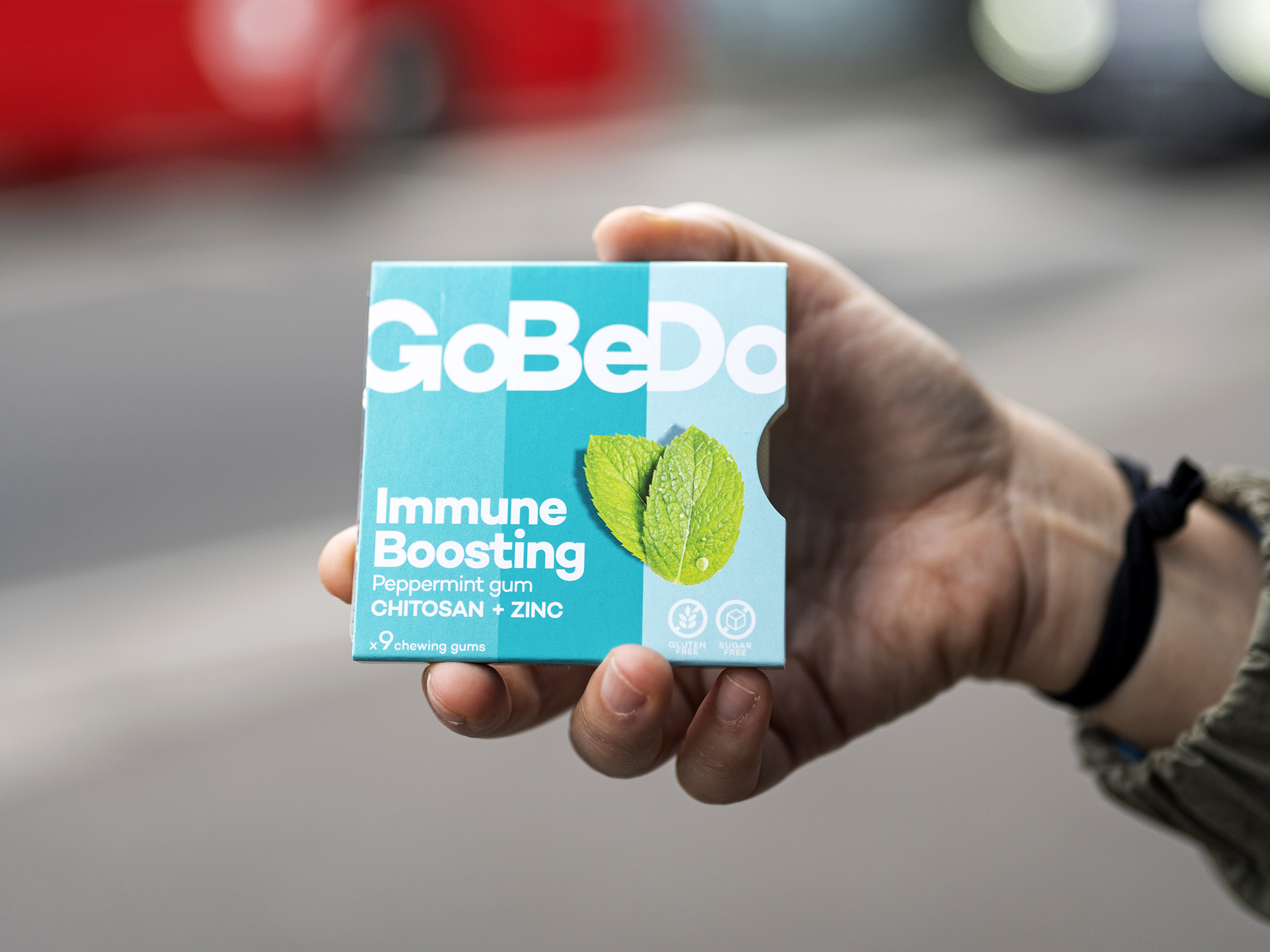 Studienleiter Dr. Karl Skriner bestätigt: „Bis zu einer Stunde nach dem 10- bis 15-minütigen Kauen ist Chitosan im Mund noch wirksam gegen Viren und Bakterien. Das Kaugummi kann so zusätzlich Schutz bieten und könnte damit helfen, die Infektionsrate insgesamt zu senken.“ Das enthaltene Zink unterstützt den immunstärkenden Effekt. GoBeDo Immune Boosting Gum hat einen erfrischenden Pfefferminzgeschmack, ist vegan, glutenfrei und zuckerfrei. Es schmeckt lecker und wird auch bei längerem Genuss nicht hart.