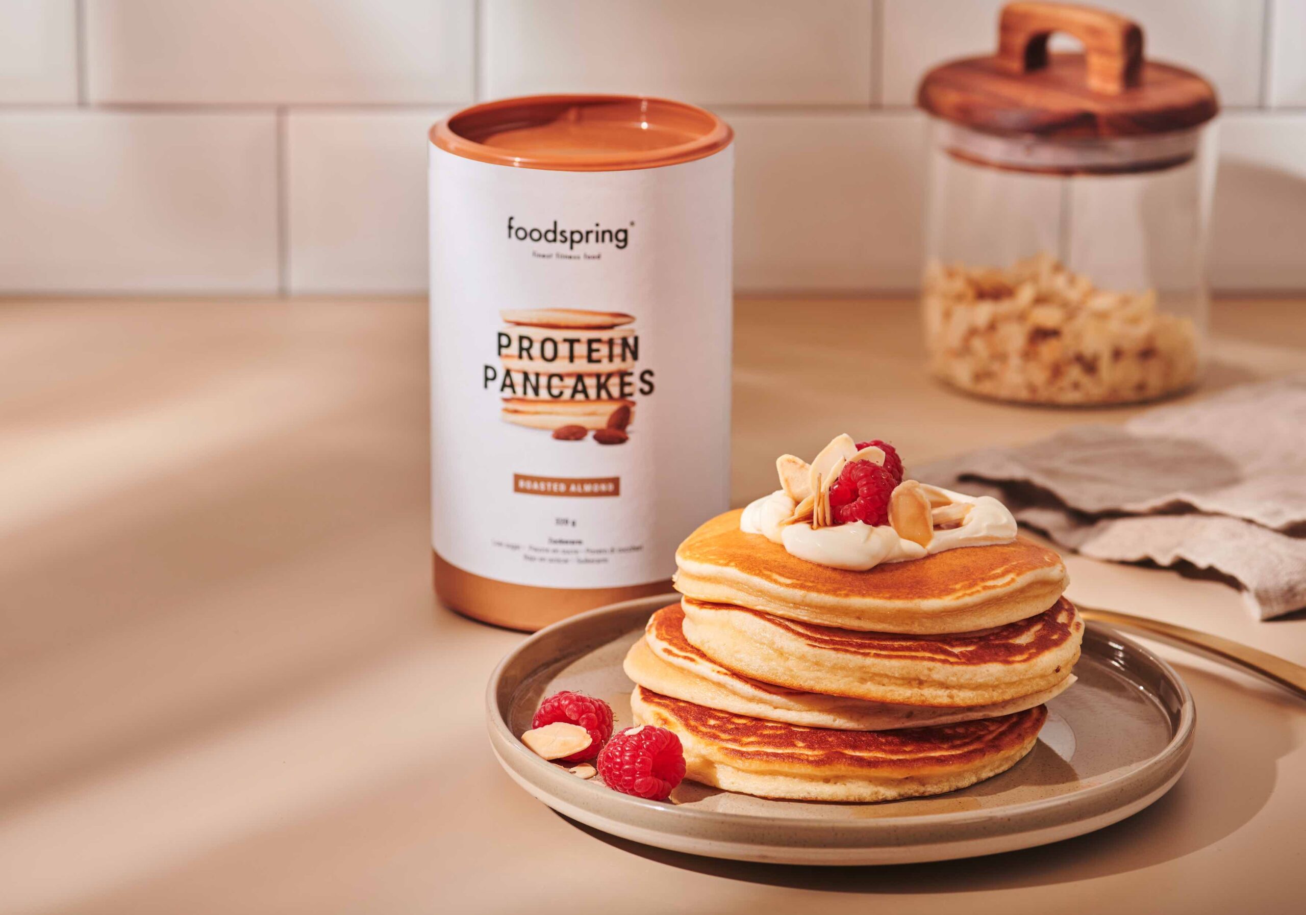 Die Protein Pancakes Kokosnuss Kakao oder Gerös- tete Mandel sollten ganz oben auf Deiner Frühstücks- liste stehen, denn foodsprings neue und verbesserte Rezeptur ist leichter und fluffiger als je zuvor. Kokos- nuss Kakao kommt mit Kokosmehl, knackigen Kokos- raspeln und echtem Kakao auf den Frühstückstisch während Geröstete Mandel, hergestellt aus Mandel- mehl und verfeinert mit gerösteten und gehackten Mandeln für eine einzigartige Textur sorgt. Mit diesen zwei proteinreichen Leckerbissen bringst Du ab jetzt mehr Abwechslung in deine Frühstücksroutine.