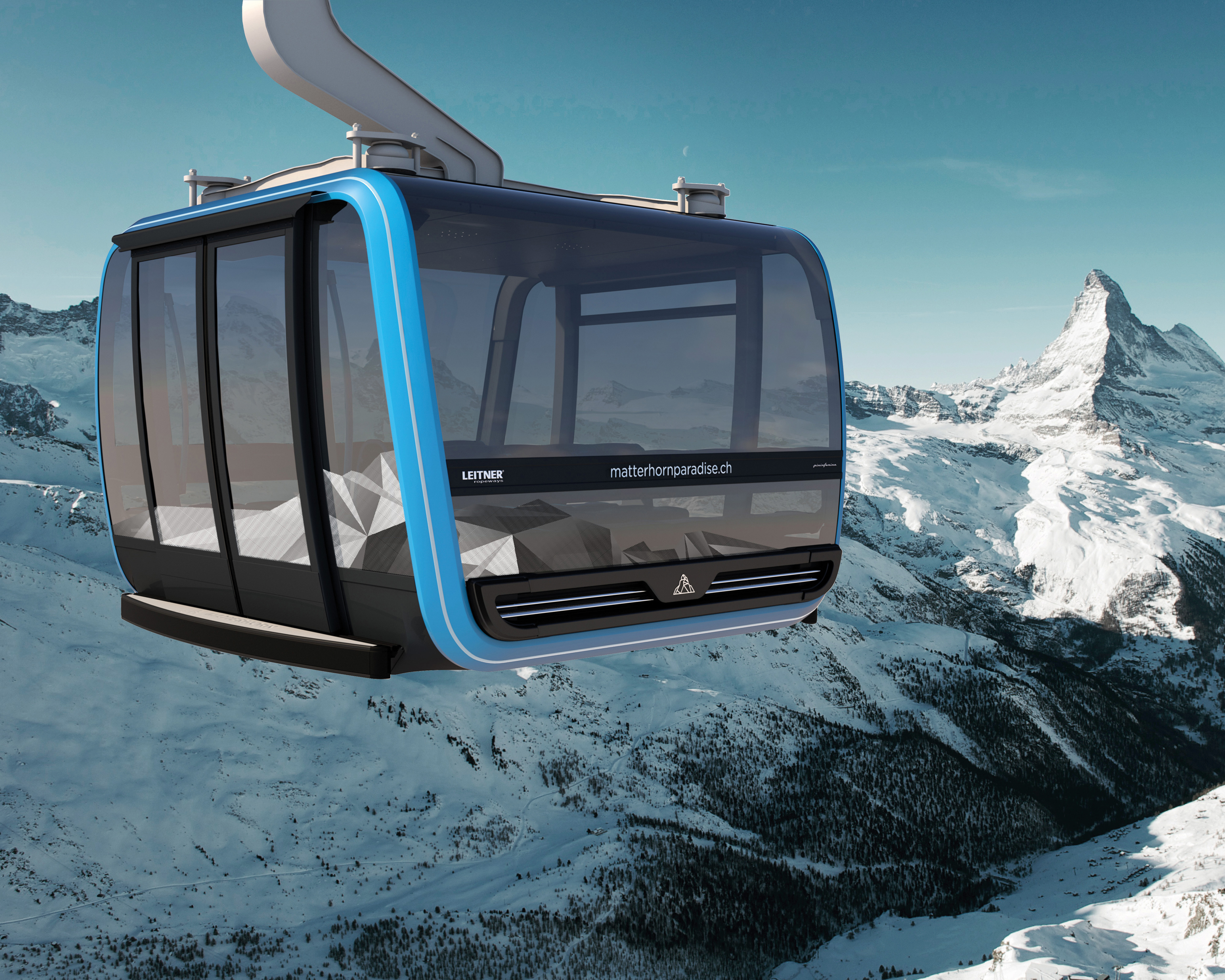Für den Bau des 3‘940 Meter langen «Matterhorn glacier ride» zeichnen sich die Zermatt Bergbahnen AG und der Seilbahnhersteller LEITNER ropeways verantwortlich. 25 Gondeln mit je 28 Sitzplätzen aus der Designschmiede von Pininfarina können die Gäste in Zermatt, nach der offiziellen Inbetriebnahme der Bahn auf die kommende Wintersaison, für die Fahrt zur höchsten Bergstation Europas auf 3’821 m .ü. M besteigen. Vier davon sind als so genannte «Crystal ride» Kabinen inszeniert. Diese Gondeln sind mit tausenden Swarovski Kristallen veredelt und verfügen über einen integrierten Glasboden. Durch die Verglasung zu ihren Füssen blicken die Fahrgäste fast 200 Meter in die Tiefe – ein Ausblick auf die eindrückliche Gletscherwelt, den man nicht so schnell vergisst und beim einen oder anderen Fahrgast bestimmt ein leichtes Kribbeln im Bauch auslösen wird. Mit einer Beförderungskapazität von bis zu 2‘000 Personen stündlich gehören Wartezeiten auf Trockener Steg der Vergangenheit an. Die neunminütige Fahrt begeistert mit erstklassigem Komfort und einem fantastischen Rundumblick auf das hochalpine Panorama Zermatts.