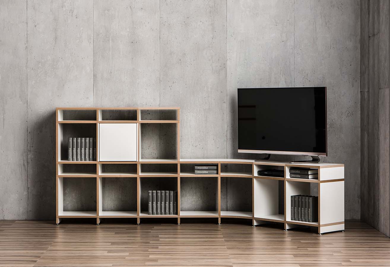 Das Steck- und Aufbausystem kann je nach Bedürfnissen jederzeit verändert und um- oder angebaut werden. Die durchdachte Funktionalität von «Mocoba» verbindet sich mit einer zurückhaltenden, formschönen Erscheinung und einer grossen Einsatzmöglichkeit.