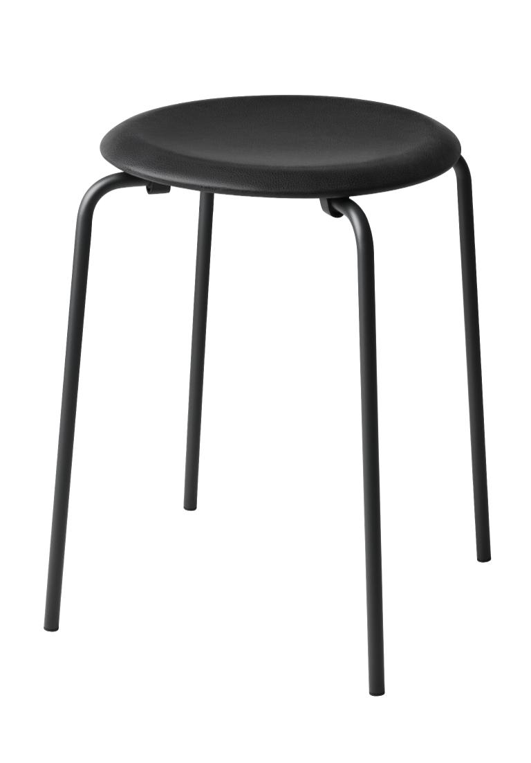 Dot™ – der Klassiker neu in einfarbigem Schwarz Objects stellt jetzt den kleinen, aber doch funktionalen Dot™ Hocker in einfarbigem Schwarz vor. Das ursprünglich von Arne Jacobsen zusammen mit seinem ersten stapelbaren Stuhl Ant™ in den Fünfzigerjahren entwickelte Stück gibt sich hier in einer monochrom schwarzen Version von pudrig matter Optik. Der Sockel aus schwarz pulverbeschichtetem Stahl ergänzt den seidig sanften Sitz aus anilin Leder. Das Ergebnis ist ein zeitloser, stapelbarer Hocker, der sich perfekt sowohl für moderne als auch für klassische Wohnstile eignet.