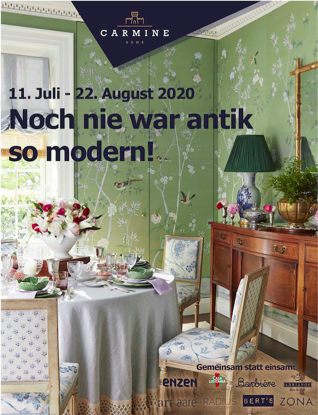 Ab dem 11. Juli verwandelt Cornelia Schranz (RADIUS Innenarchitektur) mit gekonnten Handgriffen CARMINE HOME in der Berner Altstadt für 41 Tage in einen etwas anderen Showroom. Vom Wohnzimmer zum Schlaf- und Arbeitszimmer, zur Küche und dem Esszimmer zeigt sie Ihnen wie man mit Antiquitäten modern einrichten kann. Mit der abstrakten Kunst von Marlen Lenz (Artaare) und den Designmöbeln von ZONA und BERT’s schafft sie die Symbiose zwischen antik und modern und wie man es zu Hause nachmachen kann.