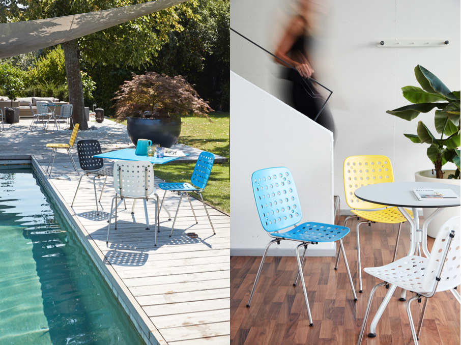 Auch der Stuhl „Coray“ macht vor, was man sich von Sommermöbeln wünscht. Leicht und flexibel sollten Tische und Stühle im Sommer sein, damit man sie ganz einfach aufstellen kann, wo man sie gerade braucht – auf dem Balkon, am Pool oder in einem schattigen Ecke des Gartens. Dabei sollen sie auch noch möglichst stabil und robust sein, schliesslich möchte man sie auch mal einfach stehen lassen können, nach einem langen Abend draussen oder wenn der Dauerregen einzieht.
