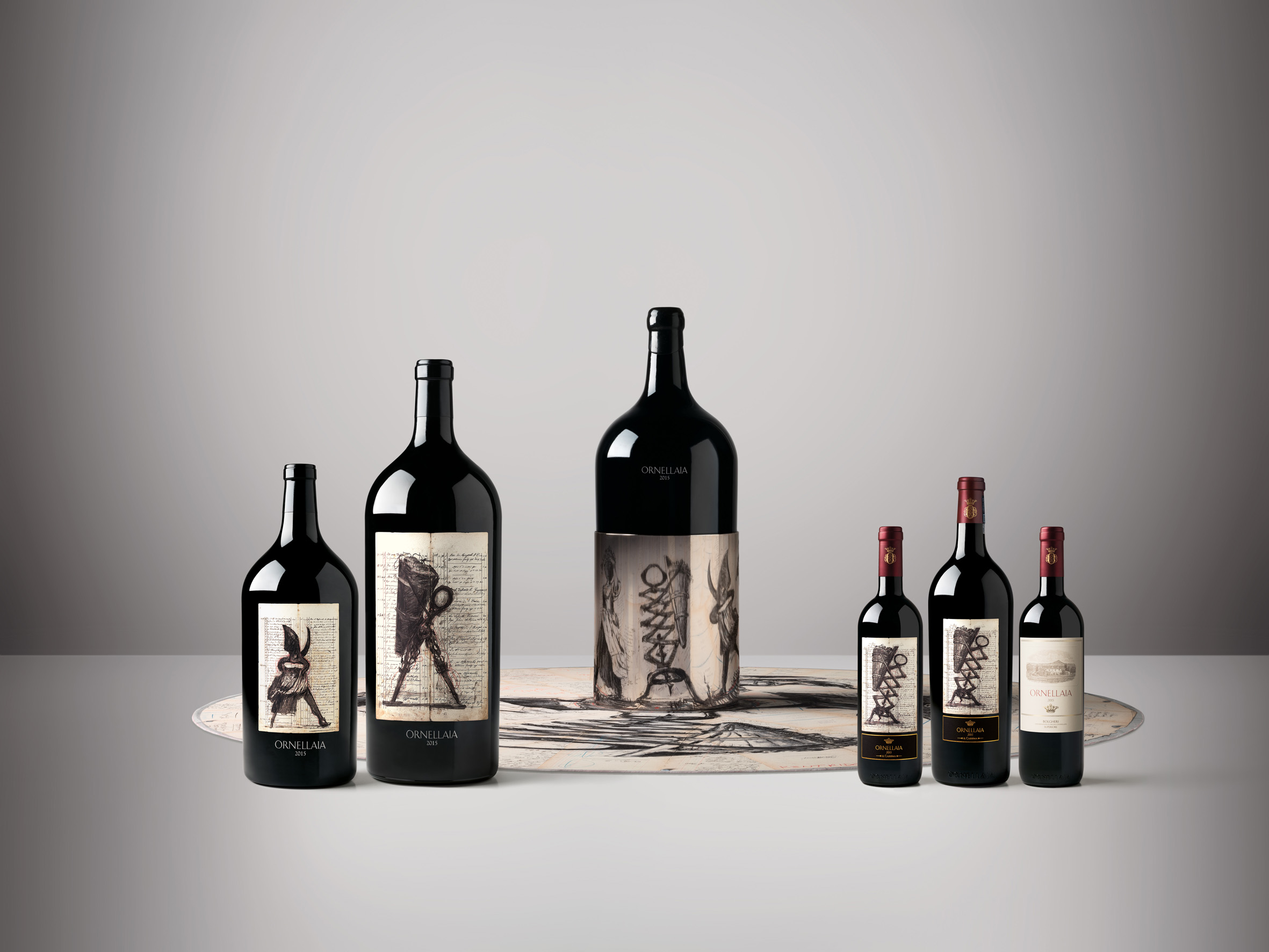 Vendemmia d’Artista zelebriert die einzigartige Persönlichkeit jedes neuen Jahrgangs von Ornellaia. Seit dem Erscheinen von Ornellaia 2006 im Mai 2009 kreiert ein zeitgenössischer Künstler jedes Jahr ein standortspezifisches Kunstwerk sowie einige Etiketten in limitierter Auflage, inspiriert von einem Begriff, mit dem der Winemaker den Charakter des neuen Jahrgangs beschreibt. Das Projekt Vendemmia d’Artista sieht ein vom Künstler gestaltetes Label auf einer Flasche pro Holzkiste Ornellaia (mit 6 Flaschen zu je 750 ml) vor. Zur Feier des 10. Jubiläums des Projekts mit dem Jahrgang 2015 werden hingegen alle Magnum-Flaschen mit diesem exklusiven Etikett angeboten, verpackt in Holzkisten mit demselben Design. Ebenso wie in den vergangenen Jahren werden im Rahmen des Projekts in limitierter Auflage 111 großformatige Flaschen – 100 Doppelmagnum (3 Liter), 10 Imperial (6 Liter) und eine Salmanazar (9 Liter) – angeboten, alle nummeriert und vom Künstler persönlich signiert.