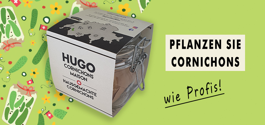 Das Set « Hausgemachte Cornichons » von HUGO, der Marke von Reitzel für Pickles aus 100% Schweizer Produktion, enthält ein Einmachglas, Cornichonsamen, Senf und Dill und ein Säckchen mit Erde. Dies sind die wenigen Zutaten, die es braucht, um seine eigenen Schweizer Cornichons anzubauen und im Einmachglas zu einem Klassiker der Schweizer Küche zu verwandeln. Danach ist das Cornichonzüchten kinderleicht!