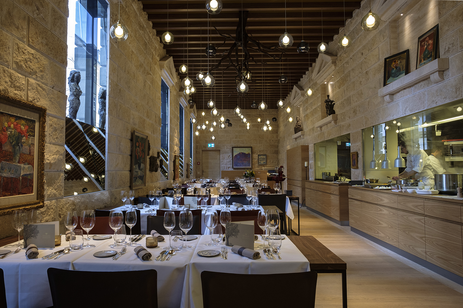 Die Gestaltung des Restaurants wurde der berühmten Schweizer Architektin Tilla Theus anvertraut, die einen “Hauch” von Ornellaia und die unverwechselbare Atmosphäre der Toskana zu schaffen versuchte; eine Landschaft mit Menschen, Essen und Wein. Ein wichtiges Projekt, für das ein italienischer Küchenchef gleichen Formats ausgesucht wurde, Giuseppe D’Errico, der nach einer Spezialisierung an der Alma bei Meisterkoch Gualtiero Marchesi im französischen Restaurant Maison Troisgros in Roanne (LY) sein Talent zum Ausdruck brachte. Dort arbeitete er fünf Jahre lang Seite an Seite mit Chefkoch Michel Troisgros, den er als seinen zweiten großen Lehrmeister betrachtet.