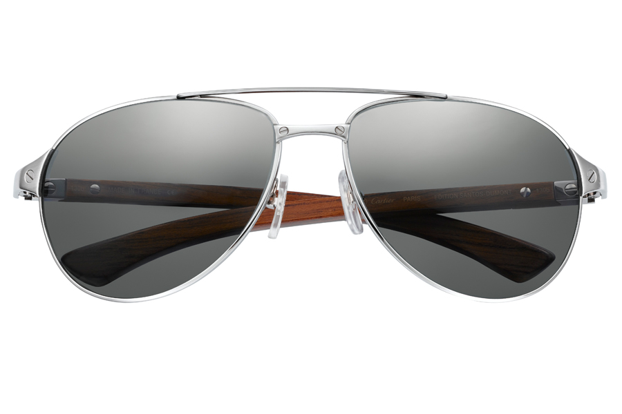 Die aus Holz und Karbon gefertigte Santos de Cartier Herrenbrille ist bis ins kleinste Detail absolut raffiniert. Zwei klassische Formen, Pilotenform oder rechteckig, die Cartier in kostbaren Materialien neu interpretiert und vervollkommnet. Mit zurückhaltender Eleganz präsentieren sich die Bügel dieser Brille mit gebürstetem Ruthenium-Finish ganz unerwartet in Bubinga, einem seltenen Holz aus Afrika, in einer modernen und raffinierten Kombination mit tiefschwarzer Karbonfaser.