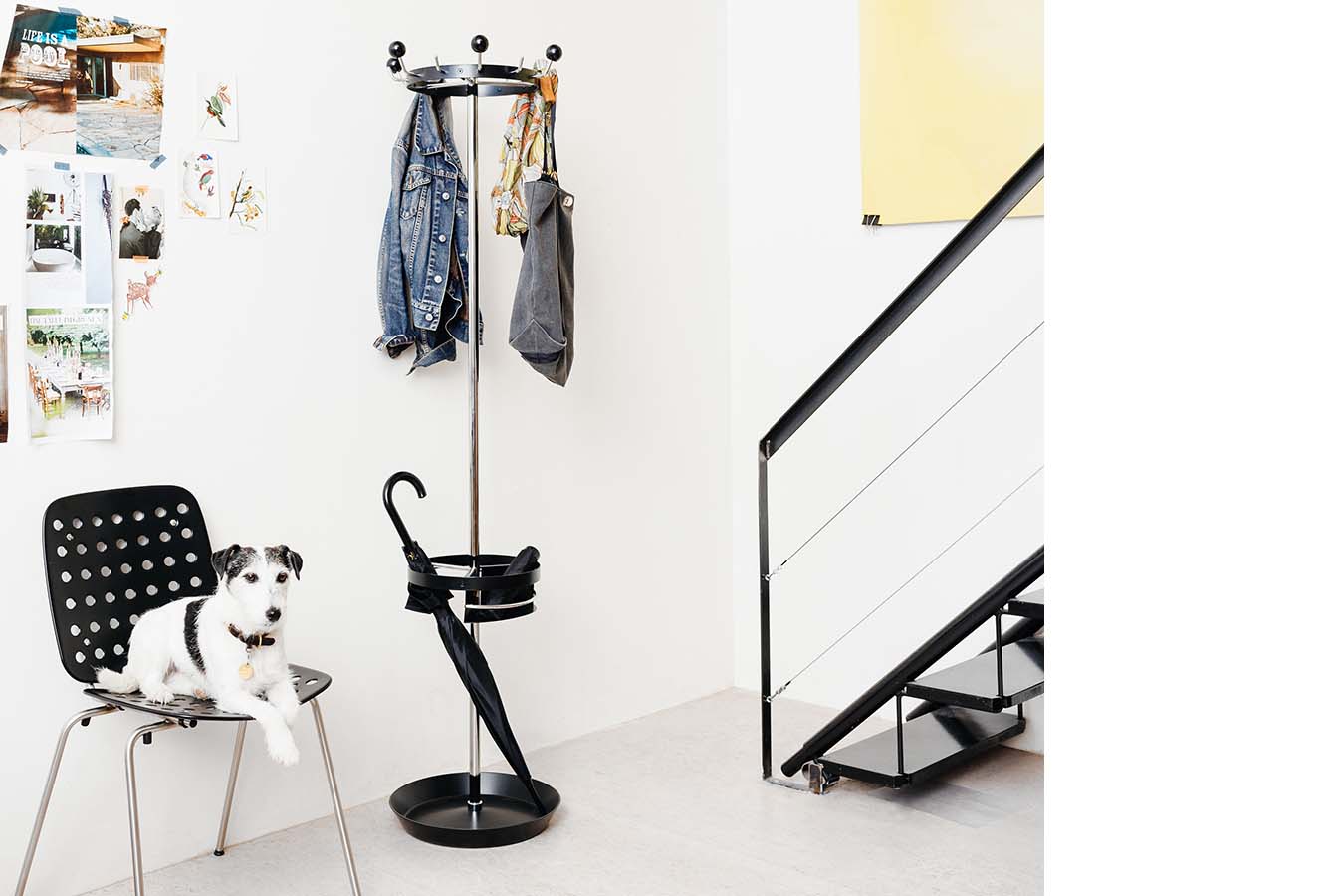 Der Garderobenständer «GSZ», entworfen vom Schweizer Architekten Stefan Zwicky, besticht durch sein zurückhaltendes Design, das sich den Gegebenheiten eines Raumes perfekt unterordnet. Nicht nur in Büros oder Hotelzimmern, auch zuhause macht dieses funktionale und ästhetische Möbelstück eine ausgezeichnete Figur.