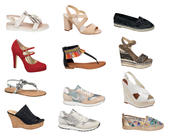 Ob flach oder hoch, geschlossen oder offen, mit Keil- oder Blockabsatz – die Modelle der neuen Frühjahr/Sommer Kollektion versprühen Frühlingsgefühle. Zeitlose Klassiker werden neu interpretiert. Sportliche Sneakers im Metallic-Look für den Alltag, auffallend verzierte Espadrilles, glitzernde Sandalen für den Stadtbummel, sommerliche Wedges und trendige Mules für den ultimativen Sommer-Look. Zum luftigen Maxikleid und einem extravaganten Sonnenhut passen die angesagten Wedges mit verziertem Keilabsatz und runden ein schickes Sommeroutfit perfekt ab. Noch nie waren Slippers so angesagt wie diese Saison. Ob in den Strandferien oder in der Stadt, die stylischen Schuhe begleiten uns auf Schritt und Tritt und flache modische Mules sind eine stilvolle Abwechslung zu den geliebten praktischen Flip Flops. Sommerzeit ist Festivalzeit und damit auch die ideale Saison sein Styling mit verträumten Folkloreelementen wie Fransen, Tasseln und Boho-Mustern aufzupeppen. Für sicheren Halt auf dem rauen Festivalgelände sorgen bequeme Booties, die zu High-Waisted-Shorts und Crop Tops das ideale Festival-Outfit bilden.