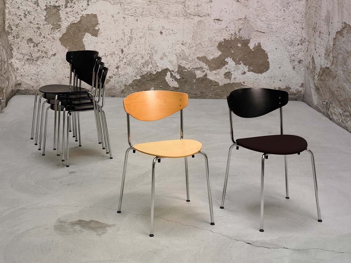 Der grazil, leicht und transparent wirkende Stuhl ermöglicht bequemes und ergonomisch richtiges Sitzen. Als stapelbarer Stuhl eignet er sich für Konferenzen, Schulungen, Grossraumbestuhlungen, aber auch für den heimischen Esstisch. Der kreisrunde Sitz und die ungewöhnliche Form der Rückenlehne sorgen für Harmonie in strengen Räumen. SKT ist optisch leicht und unaufdringlich.