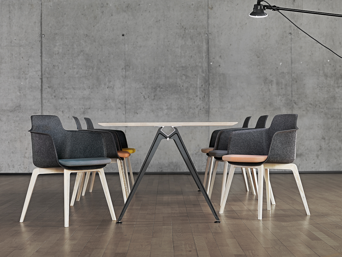 Ob als Vierbeiner mit Holzgestell, Vierbeiner mit Metallrohrbeinen oder mit zentralem Drehfuss, TONO ist äusserst vielseitig einsatzbar. So macht er am Sitzungstisch eine ebenso gute Figur wie am heimischen Esstisch, als Solitär neben dem Bücherregal ebenso wie zu hunderten im Konferenzsaal, im Wartebereich einer Bank ebenso wie am Büroarbeitsplatz.