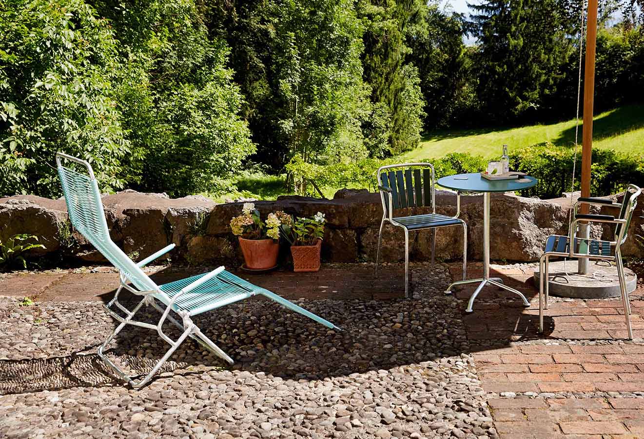 Der Altorfer Liegestuhl Modell 1158, auch als ‚Spaghetti-Liege‘ bekannt, ist einer der bekanntesten Schweizer Designklassiker im Gartenmöbelbereich. Entworfen hat ihn Huldreich Altorfer, der Sohn des damaligen Direktors der Firma Embru, im Jahr 1948. Seinen Erfolg verdankt der Altorfer Liegestuhl dem angenehmen Liegegefühl, seiner zeitlosen Form und seiner robusten Ausführung.