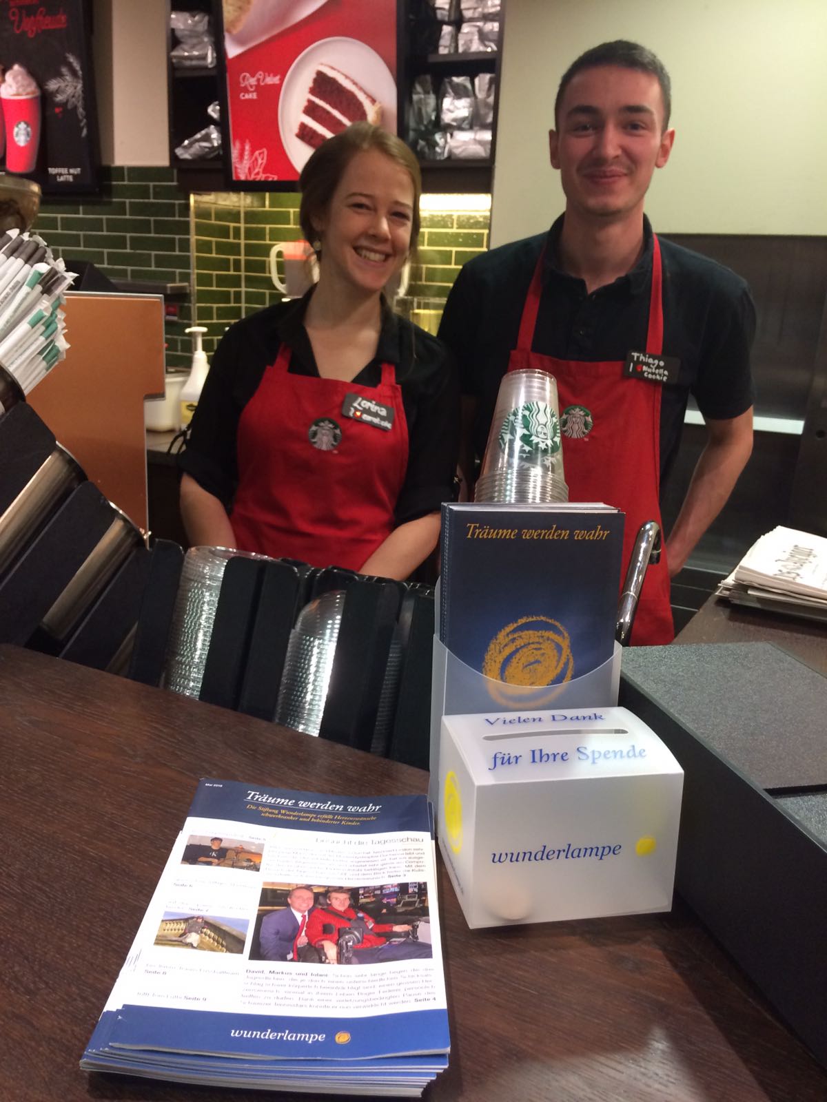 Zusätzlich zu einer Spende an die Organisation werden die Starbucks Partner (Mitarbeiter) mithelfen, Spenden zu sammeln und Bewusstsein für die Arbeit der Stiftung Wunderlampe zu schaffen.