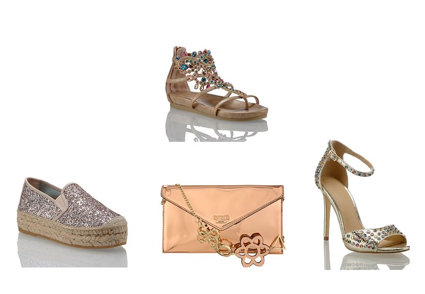 Die Temperaturen steigen, die Tage werden länger und wir strahlen mit der Sonne um die Wette. Mit extravaganten Accessoires hüllen wir uns in einen unwiderstehlichen Glow und verleihen jedem Sommeroutfit eine Prise Glamour. Sandalen, Espadrilles, Sneakers sowie Taschen und Accessoires funkeln, glitzern und sorgen für Highlights an langen Sommernächten und heissen Sommertagen.