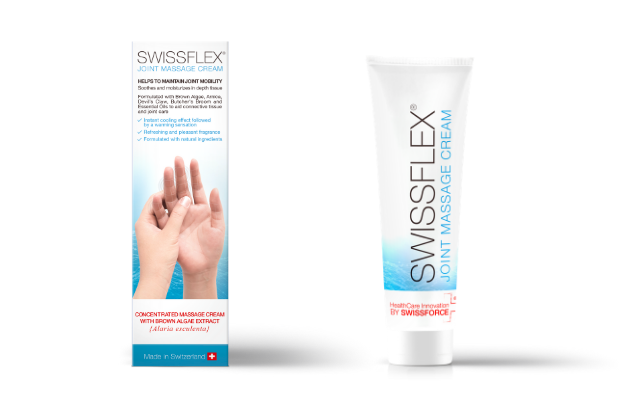 Dank seiner konzentrierten und aussergewöhnlichen Formulierung hilft die Swissflex Gelenkmassagecreme des Schweizer Gesundheits- und Kosmetikunternehmens SWISSFORCE Pharma AG von Schmerzen betroffene Stelle in der Hand zu kühlen und den anhaltenden Schmerz effektiv zu lindern. Zudem ist die Creme ein hinreichender Feuchtigkeitslieferant und kann so das umliegende Bindegewebe aktiv verbessern. Die Swissflex Joint Massage Cream schafft ein Resultat, das wirklich überzeugt – national wie international.