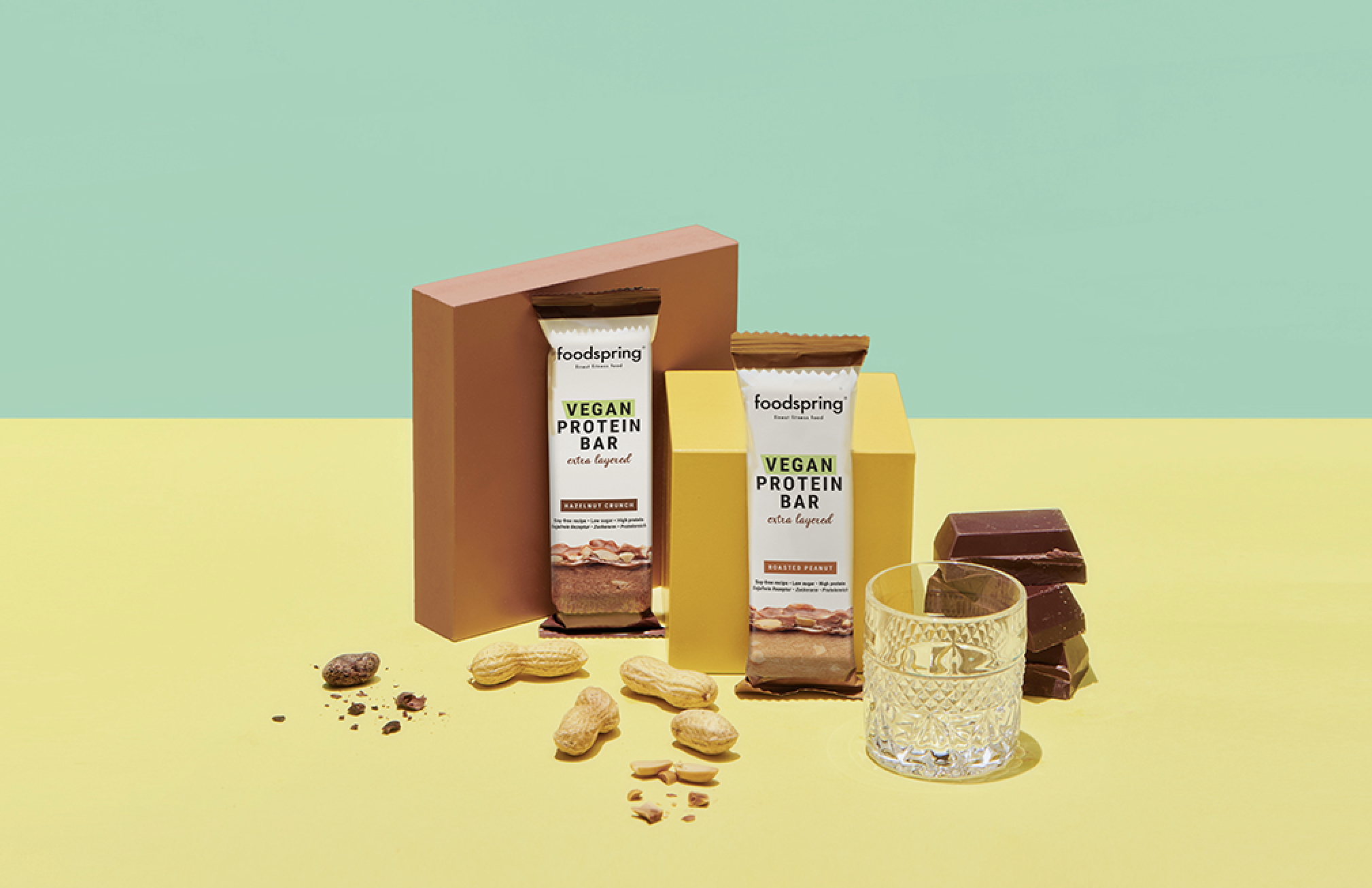 Ein richtig leckerer veganer Bar? Haben wir geriegelt! Wir präsentieren das neueste Mitglied unserer Protein Bar Familie: den Vegan Protein Bar Extra Layered in den unwiderstehlichen Sorten Hazelnut Crunch und Roasted Peanut.