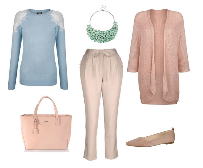 Pastelltöne im Frühling sind stets eine modische und stilvolle Wahl. Die ersten warmen Sonnenstrahlen erwärmen das Gemüt und die zarten Pastelltöne hellen unsere Garderobe auf. Die leichten und weichen Farbtöne haben Hochsaison und mit einer All-Over-Pastell Kombination kann man modetechnisch nichts falsch machen. Eine lockere sandfarbene Hose passt ideal zu einem verspielten Pullover in hellblau und einer bequemen Strickjacke in Apricot. Accessoires in abgeschwächten Pantonetönen runden den fröhlich romantischen Look perfekt ab und sorgen für Frühlingsgefühle.
