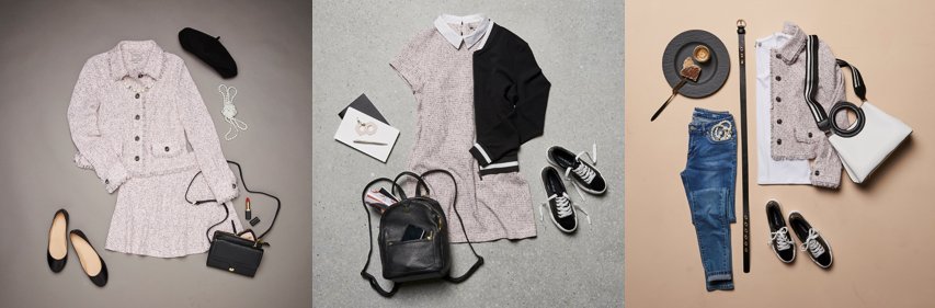 Das Trendmaterial für den Frühling 2019 heisst Tweed. Schon Coco Chanel wusste: das gemusterte Gewebe sorgt in jedem Fall für einen Hingucker. Das findet auch Yes or No by Manor und präsentiert zwei Klassiker im angesagten Tweed-Look. Ob klassisch, sportlich oder casual – Deux-Pièce und Minikleid sind echte Kombinationskünstler und sorgen für frische Outfits mit dem gewissen Etwas.