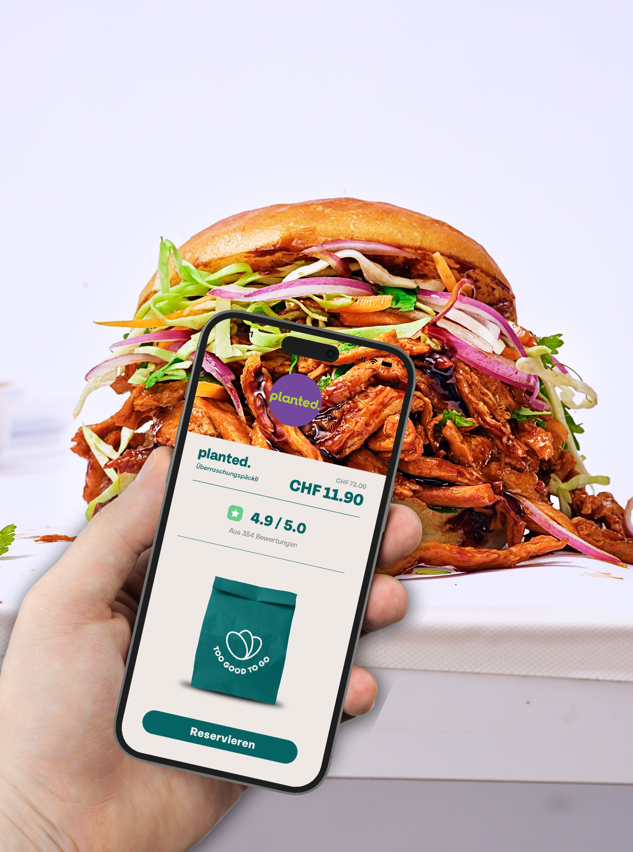 Die Too Good To Go App kostenlos im App Store oder bei Google Play herunterladen, öffnen und einmalig registrieren. Dann unter dem Reiter «Stöbern» den Begriff «planted» in der Suchleiste eingeben, das Angebot zwischen 4. Mai und 12. Mai reservieren und bezahlen – und am 13. Mai 2023 (9 bis 12 Uhr) in Kemptthal, Kemptpark 32/34, 8310 Kemptthal (ZH) abholen. Die Produkte sind tiefgekühlt und mindestens bis zum 3. Juni 2023 haltbar, sofern die Kühlkette nicht unterbrochen wird. Sobald das Produkt geöffnet ist, soll es innert 2-3 Tagen konsumiert werden.