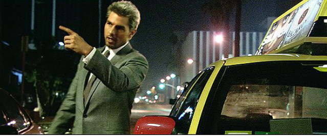 Max (Jamie Foxx) ist Taxifahrer und nachts unterwegs. Vincent (Tom Cruise) ist Auftragsmörder mit engem Zeitplan. Als Vincent in Max’ Taxi steigt und diesem ein nettes Sümmchen bietet, damit er ihn zu mehreren verschiedenen Adressen fährt, sagt der Taxifahrer nichtsahnend zu. Prompt landet schon beim ersten Stopp eine Leiche auf dem Dach seines Wagens. Wäre Max ein Uber-Fahrer, würde er über die App den Notruf wählen und die Reise des Killers wäre zu Ende.