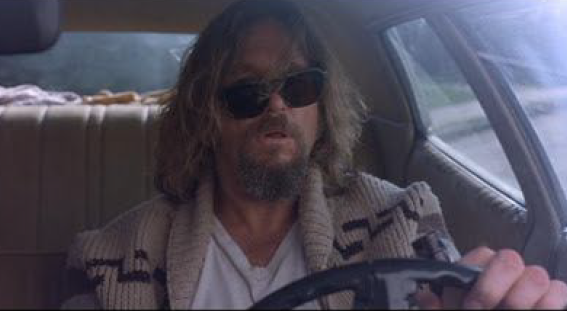 Der Dude! Was muss er nicht erleiden, um seinen Ruf als ehrlicher Müssiggänger zu retten und die Schändung seines Teppichs ungeschehen zu machen: Schläge, Kidnapping, Beschimpfungen – kaum eine Demütigung bleibt ihm erspart. Selbst aus einem Taxi wird er geworfen, nur weil er die Musik der Eagles nicht mag. Und sein Auto, ein Ford Gran Torino, wird beschossen, gestohlen und angezündet. Hätte der weise Dude doch Uber nutzen können, er und The Dude’s Car lebten glücklich zusammen, bis ans Ende ihrer Tage.