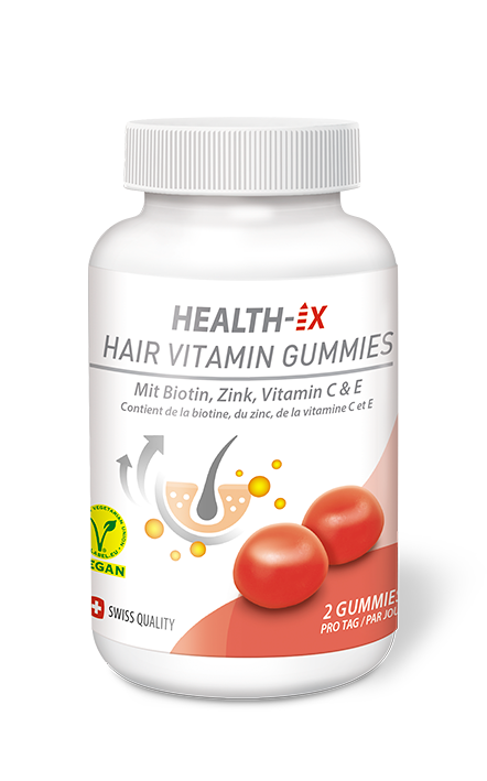 Die neuen Hair Vitamin Gummies von Health-X sind die perfekte Ergänzung für deinen Alltag. Mit nur zwei Gummies pro Tag wird der empfohlene Tagesbedarf an Biotin, Zink und den Vitaminen C und E gedeckt.